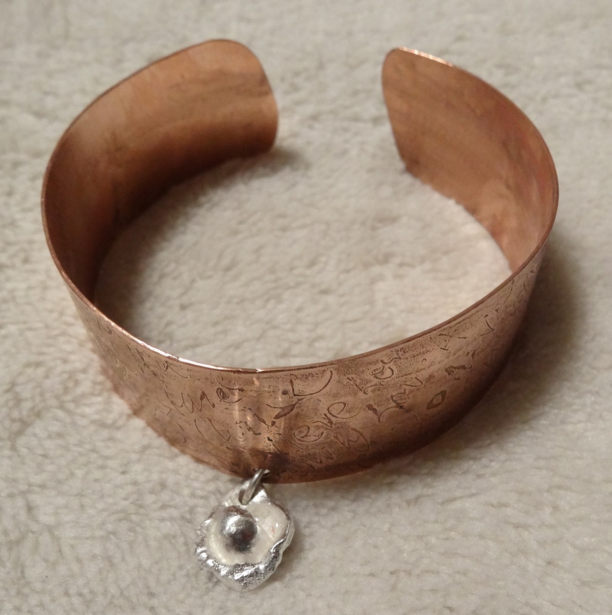 Copper and sterling silver drop bracelet